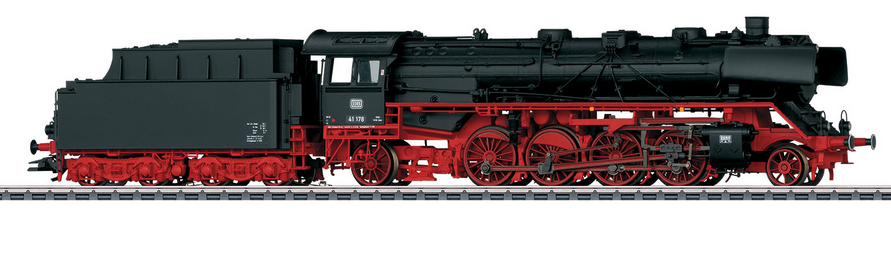 Vorbild: Güterzug-Dampflokomotive Baureihe 41 mit Schlepptender. Altbau-Ausführung der Deutschen Bundesbahn (DB), mit Witte-Windleitblechen, Altbau-Kessel, Einheitskastentender 2´2´T34, DB-Reflexglaslampen, einseitigem Indusi und Puffertellerwarnanstrich. Betriebsnummer 41 178. Betriebszustand um 1965.