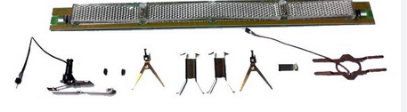 Passend zu den Wagen 43241, 43250, 43251, 43260 und 43261. Bestehend aus Stromzuführung, Leuchtstab mit Lampenfassungen, 2 Glühlampen und Strom führender Kurzkupplung.