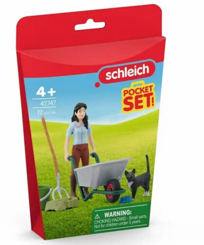 1x Figur Emily, 1x Katze, 1x Schubkarre, 1x Heugabel, 1x Heu zum Aufspießen, 1x Eimer, 1x Hundenapf