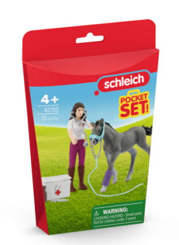 • 1x Figur Mrs. Kramer, 1x Trakehner Fohlen, 1x Putzkiste, 1x Medikamentenflasche, 1x Spritze, 1x Stethoskop, 1x Haftbandage, 1x Stallhalfter