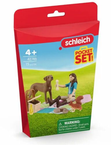1x Figur Lisa, 1x Rhodesian Ridgeback, 1x Eichhörnchen, 1x Picknickdecke, 1x Picknickkorb, 4x Stück Apfelkuchen, 1x Flasche, 1x Teller, 1x Hundenapf, 1x Knochen